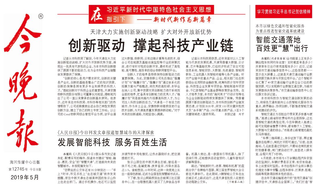 近日,天津BB贝博艾弗森物联科技股份有限公司登上《今晚报》头版头条,以下为相关内容: